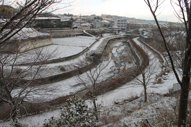 勝尾寺川(かつおじがわ)も雪化粧(ゆきげしょう)をしていました。