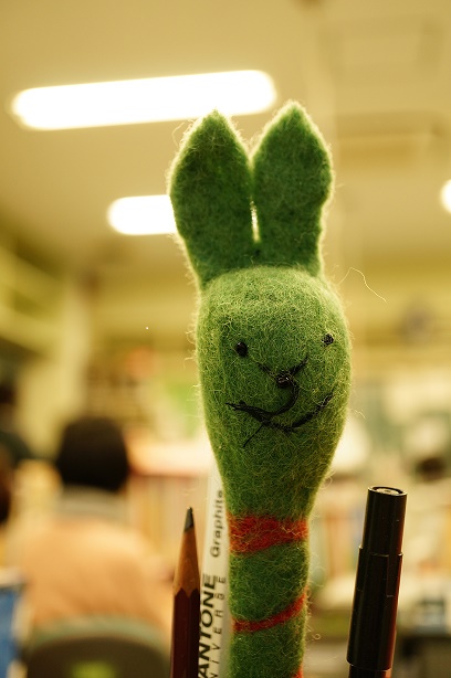 職場(しょくば)で愛用(あいよう)している鉛筆(えんぴつ)カバーのウサギさんです。