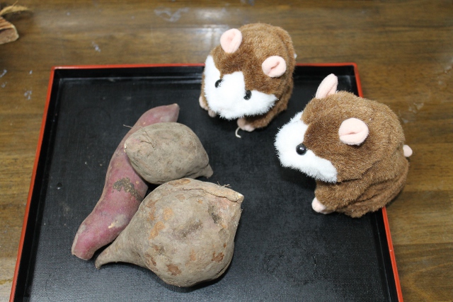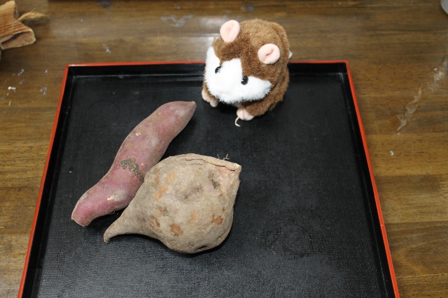 収穫の秋、我が家に大きなお芋さんがやってきました。焼き芋にしようか、ふかし芋にしようか、芋ご飯にしようか、いつか挑戦して失敗した大学芋にしようか、ハムタロウたちが頭を絞ってくれています。