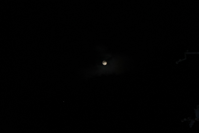 雲が流れて月が輝き出しました。レンズを交換して、シャッター速度を調節して何枚か撮りました。
