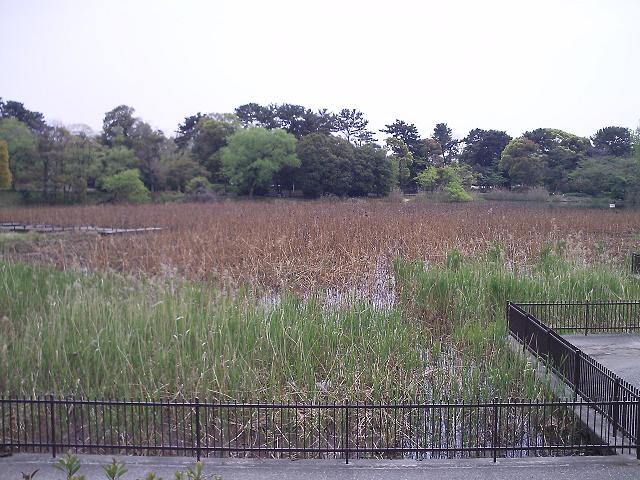やく1.5km歩いて緑地公園に着きました。葦の湿原のようなかなり広い池なのでしょうか?