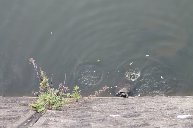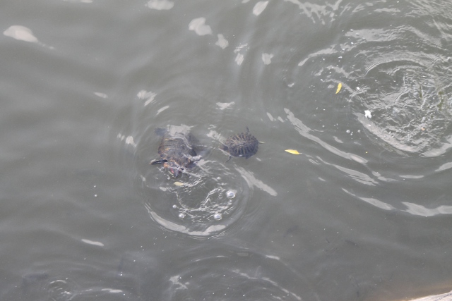 この池には亀がいます。亀好きなおじいさんが時々やってきてはパンをくれるそうです。