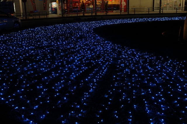 阪急北千里駅のロータリーに飾られたLEDライトです。