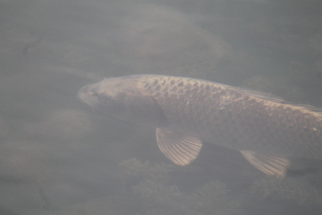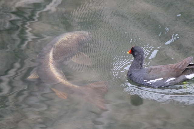 たぶん鯉(こい)の方(ほう)が大(おお)きいと思(おも)うのですが、このバンはこの鯉(こい)を飲(の)み込(こ)むつもりだったのでしょうか?