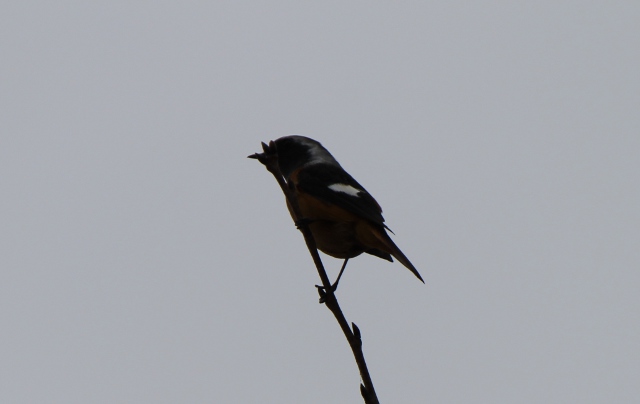 箕面の皿池の周りで撮影しました。羽根が黒でおなかが茶色でした。やや太っている印象を持ちました。鳴き声が聞こえませんでした。