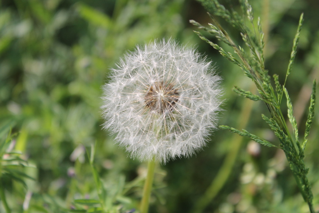 同(おな)じくまん丸(まる)なタンポポの綿毛(わたげ)です。
