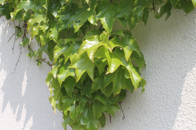 グリーンです。自然(しぜん)に垂(た)れ下(さ)がった緑(みどり)の葉(は)っぱです。新(あたら)しいですね。