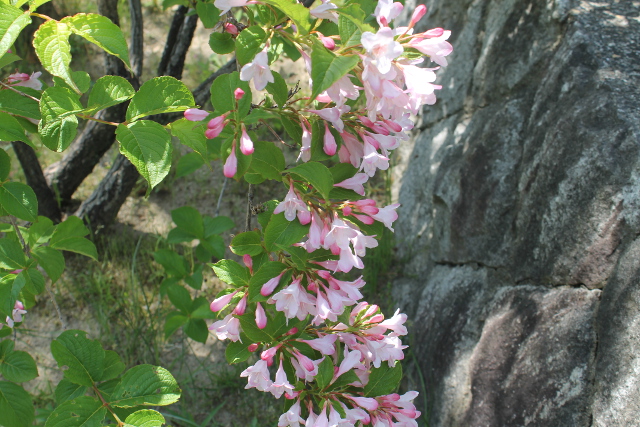 公園(こうえん)の石垣(いしがき)の方(ほう)に回(まわ)り込(こ)んで花(はな)を見(み)るとこんなに咲(さ)き誇(ほこ)っていました。