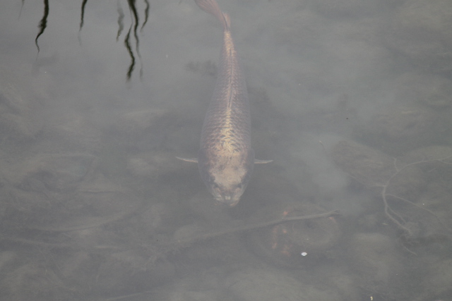 愛想良く銀光りする鯉が来る