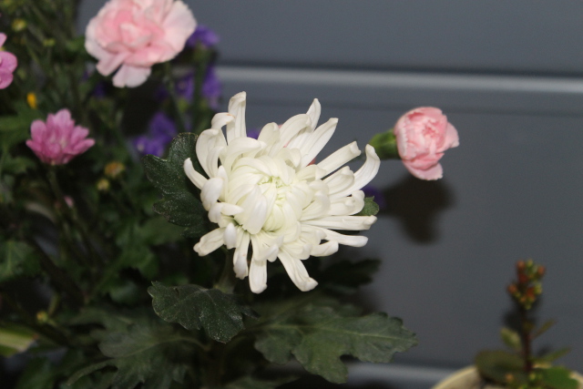 春分の日に買ったお花の中で、十分に咲いていなかった白い菊がパッと開いてくれました。