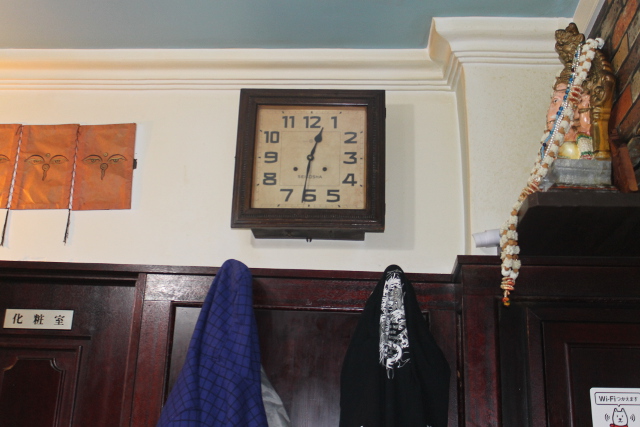 お店の中にあったかなり古ぼけた時計です。ぴたっと正しい時刻を指していました。