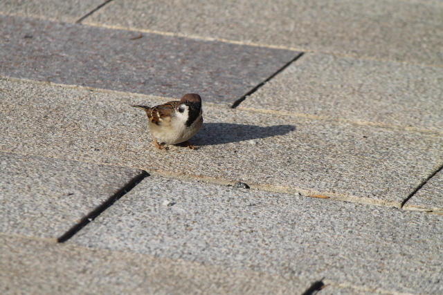 朝(あさ)の日差し(ひざし)の中(なか)で小(ちい)さな雀(すずめ)が私(わたし)を見(み)つめていました。