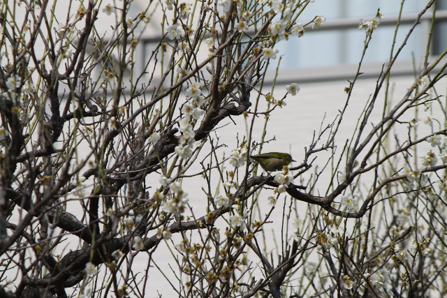 白梅(はくばい)の方(ほう)にも飛(と)んでいきました。落(お)ち着(つ)きなくあちこち飛(と)び回(まわ)るので追(お)いかけるのが大変(たいへん)でした。