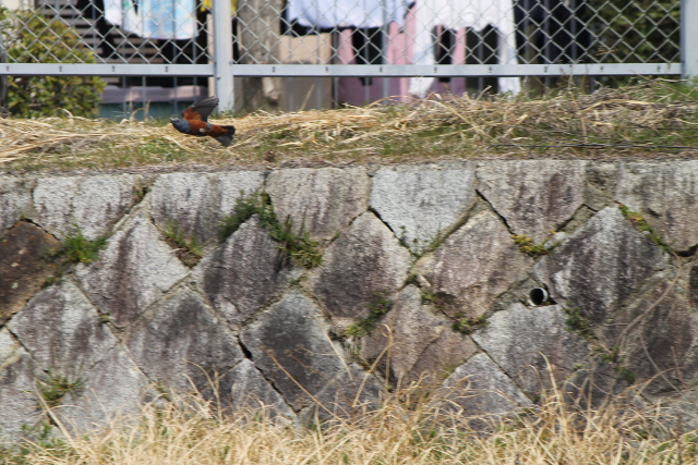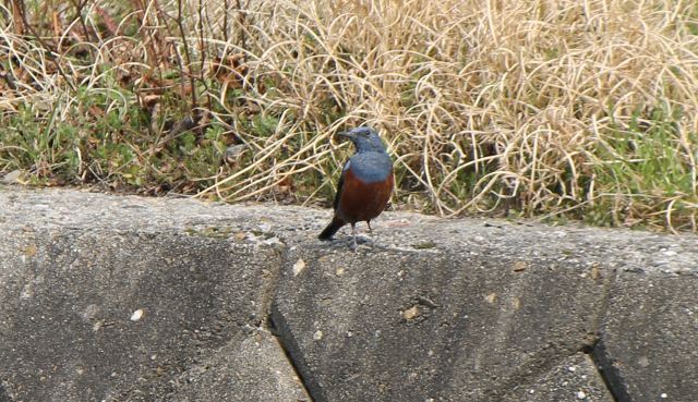 ちょこちょこしながらイソヒヨドリが飛(と)びました。