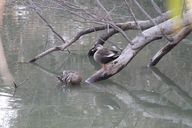 千里中央公園(せんりちゅうおうこうえん)の安場池(やすばいけ)でリラックスしていた鴨二羽(かもにわ)です。