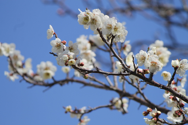 公園の白梅が美しく咲いていました。昨年はこの梅の木に割合大きな梅の実がなっていて、いくつかは鳥に食べられたり、ぽろぽろと下に落ちていたのでこのままではもったいないと思い、少しいただいて梅ジュースを作りました。おいしかったです。