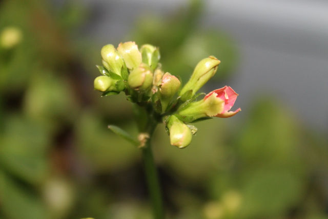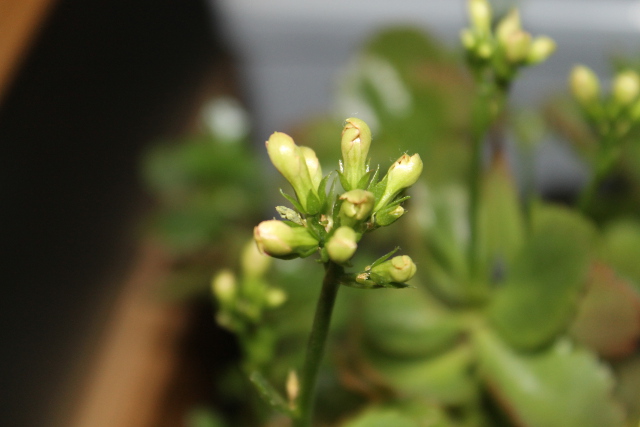 カランコエの花芽(はなめ)がやっと綻(ほころ)び始(はじ)めました。