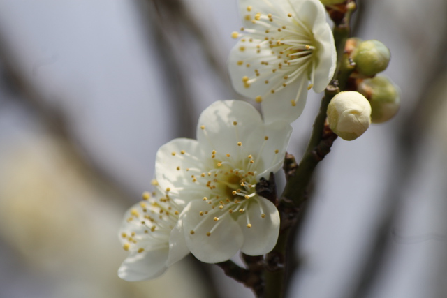 いつも行(い)っている公園(こうえん)の白(しろ)い梅(うめ)が半分(はんぶん)咲(さ)いていました。
