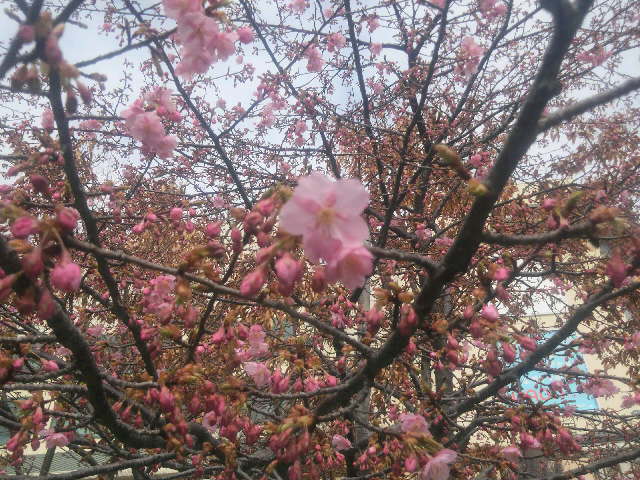 ちょっとピンぼけの河津桜(かわづざくら)です。