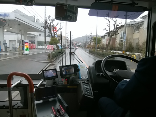 久し振りに本格的な雨降りの日になりました。今朝はバスに乗り込んでまだ十分席はありましたが、座席には座らず運転手さんの近くで立つことにしました。