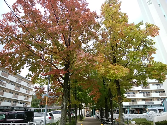いつも見ている光景なのですが、緑の葉が少しずつ色づいてきました。秋の深まりとともに空気は冷たくなり、いよいよ紅葉の季節が近づいてきたようです。観光地に行かなくても身近な場所で紅葉を楽しむことが出来るのがいいです。イチョウの葉も黄色くなってきました。