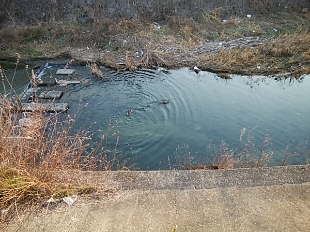 春の小川がさらさらと流れていたので、いつものバス停から少し道をそれて川の上流に歩き始めると二羽のカモが仲良く遊んでいました。スマホでのぞくと何を思ったのか急に二羽が離れて思い思いの方向に泳ぎだしました。
