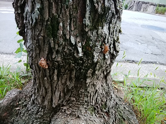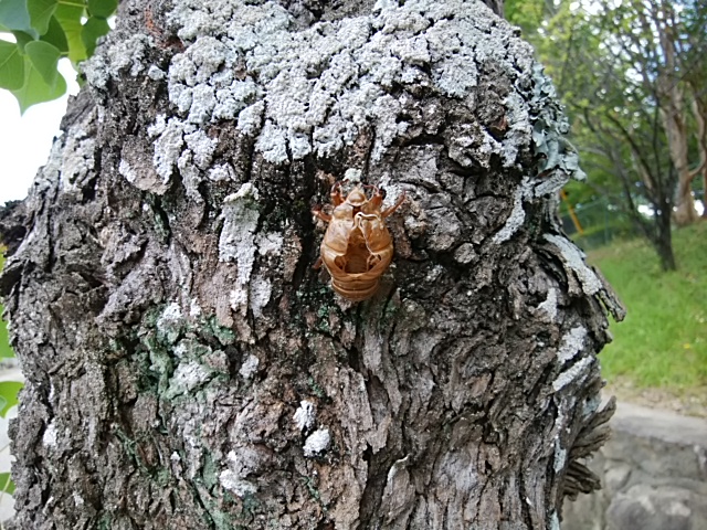 蝉の抜け殻がナンキンハゼのごつごつした樹皮にくっついていました。「空蝉」と言う言葉が浮かんできて、次にこの歌詞が浮かんできました。