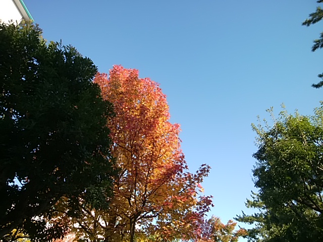 晩秋の秋空に常緑樹の中で輝いて見えました。