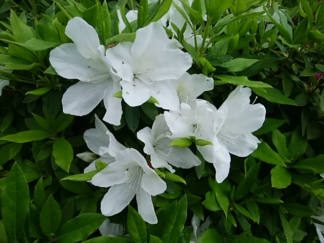 気がつけば家の周りは躑躅が満開近しでとりわけ白い色の躑躅が目に入りました。赤色と桃色の花もあちこちに咲いていましたが、この白く輝く美しさは特別かもしれません。