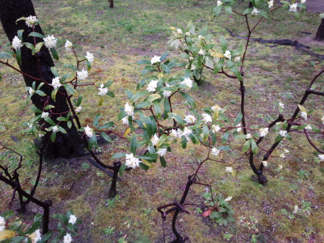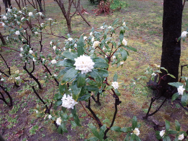 ジンチョウゲの花が満開でした。小さい花が精一杯足並みそろえて咲く姿は何かしら可愛く感じられます。昔はジンチョウゲの花の香りがかげたのですが、最近においをあまり感じなくなってしまっているみたいでこの時もジンチョウゲのにおいは感じられませんでした。