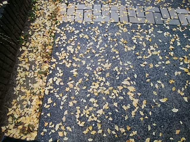 きょうは朝から凄い雨が降りました。バス乗り場に向かう道にはイチョウの葉っぱがたくさん落ちていました。雨に降られて重くなったのでしょうか?