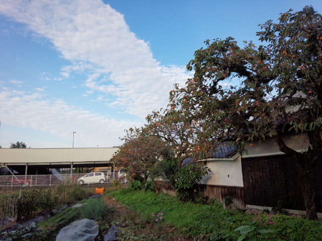 今朝の空です。白い雲が帯のように北から南へ流れていました。