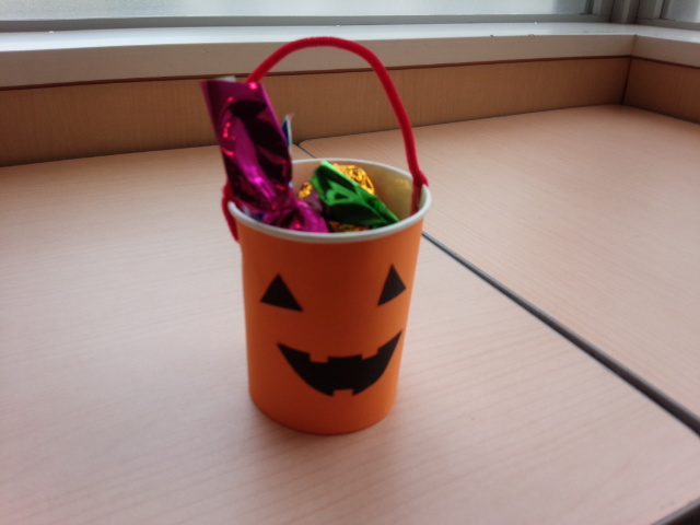 『トリックオアトリート』と言ってお菓子をもらうためのお菓子入れを作ってみました。