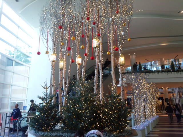 西宮ガーデンズに昨日行ったときに見たクリスマス飾りです。2階の入り口から入って出迎えてくれる木立です。上から吊るされたランタンが美しく輝いていました。