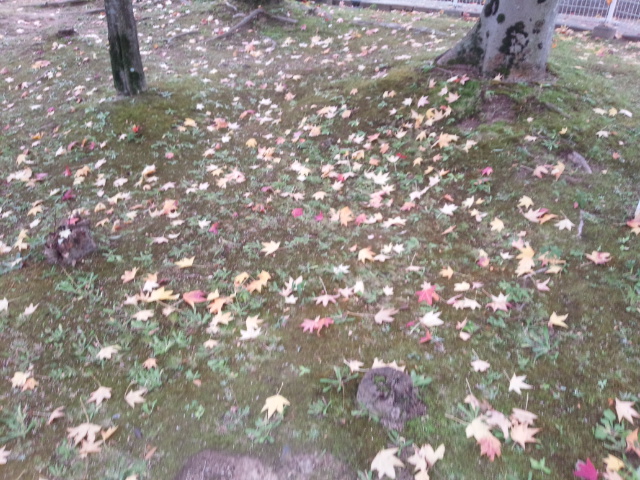 帰り道、緑地の中にも落ち葉が散って美しい模様を作っていました。