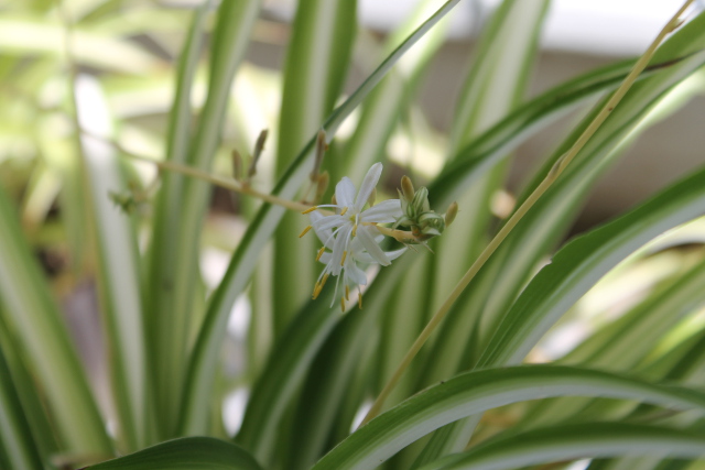 鉢の中にオリヅルランの花が美しく咲いていました。小さいけれどきれいです。