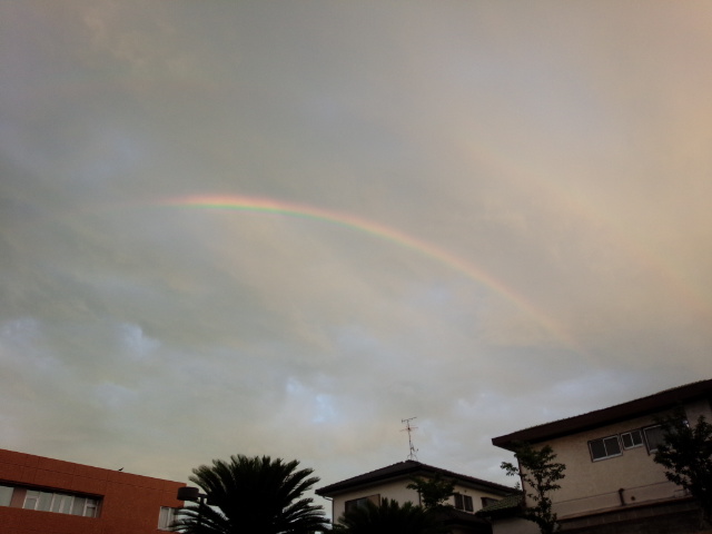 雨が降った後でもないのに虹が出るなんて、それも二重の虹なんてちょっと感動です。