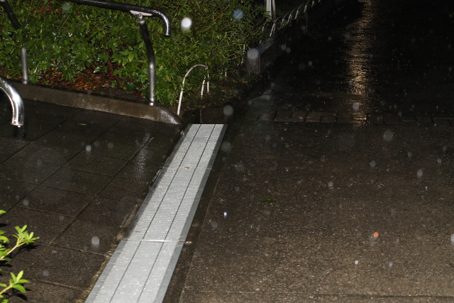 雨を撮しにカメラと傘を持って道路を流れ落ちる雨水の流れを撮影しに出かけました。