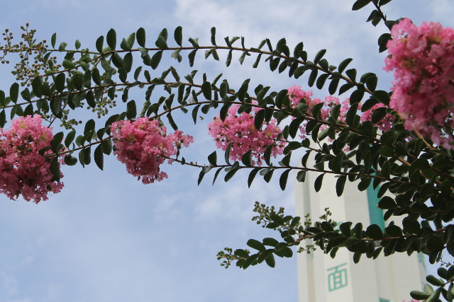 炎天下の午後0時、買い物をしようと出かけ、百日紅の花が目に入りました。