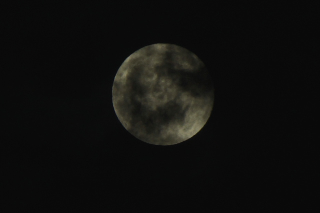 マニュアル撮影で撮ってみたのですが、雲に隠れて明るさが落ちて暗い月になってしまいました。