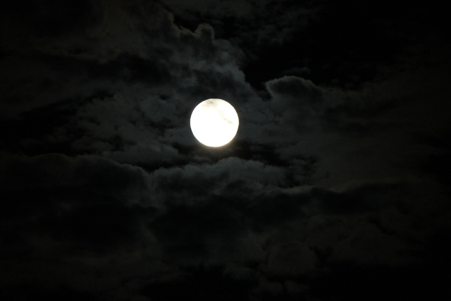 とりあえずオート撮影で一枚とりました。そこで絞りやシャッター速度を変えて撮影しようとするとどういうわけか雲が前に出てきて月を隠し始めました。