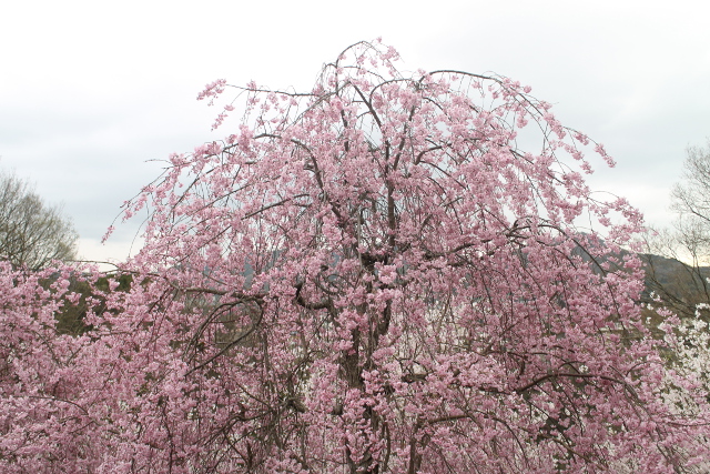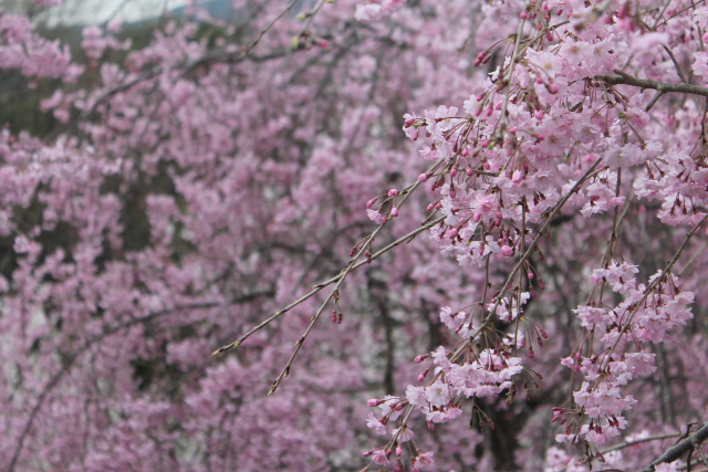 昨日の夕方、今にも雨が降り出しそうなお天気でしたが、枝垂れ桜の仄かな明かりが周りに漂っていました。