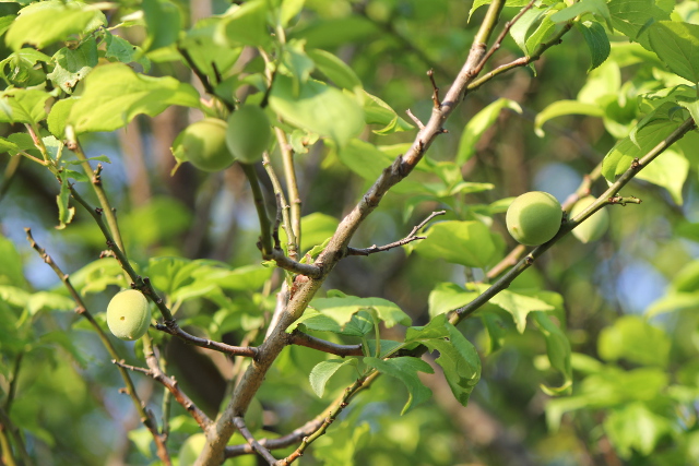 いつもの公園の梅の実がすくすくと大きくなってきました。一粒一粒にカメラを向けて撮影したくなりました。