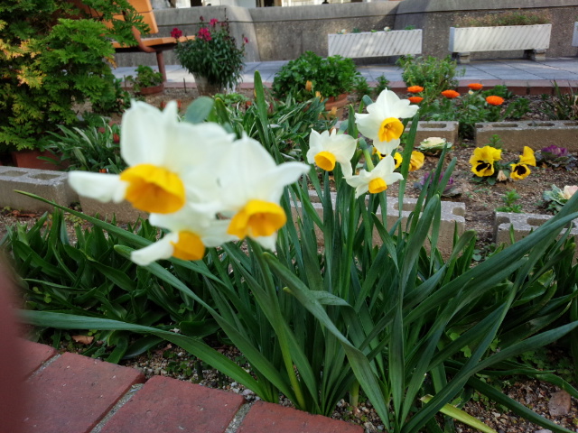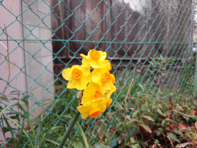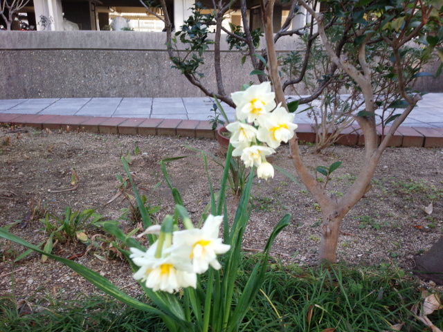 森之宮の大きなURの中の花壇で見つけた水仙です。奥の方の花にピントが合ってこっちの花がぼけた感じで、ブラザースフォーの『七つの水仙』の歌を思い出しました。