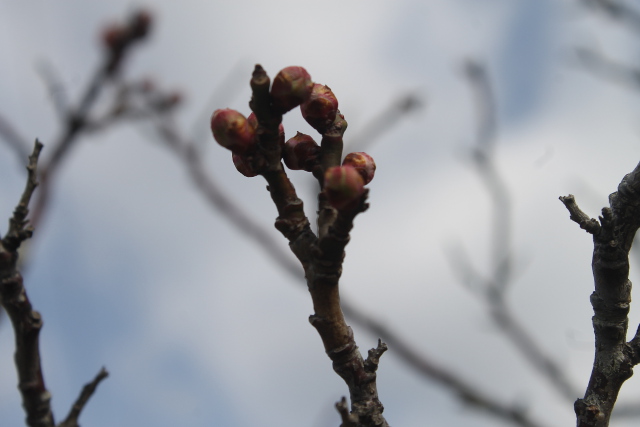 いつもの公園の梅の木が花芽を付けました。ぷっくりと膨らんだ丸い芽が弾けば、三月です。