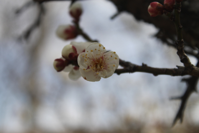 横の方の木を眺めてみると、一本だけ咲き始めた梅の木がありました。