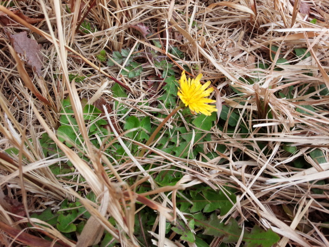 土筆とタンポポを見つけました。♫ポポって言うのが可愛いね♫っという歌が聞こえてきそうです。 タンポポちゃんとツクシくんより