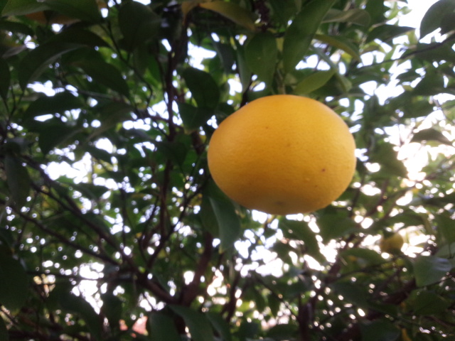 緑から黄色になって蜜柑在り