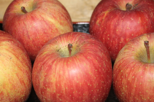 サンふじなのでできるだけ赤い色をしたリンゴを買いました。それぞれどんなわけがあるのか5つのリンゴに尋ねてみたくなりました。