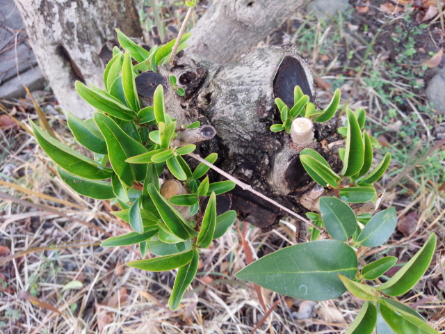 木の幹の切り口に新しい青々とした葉が天に向かってからだを広げるように現われてきました。